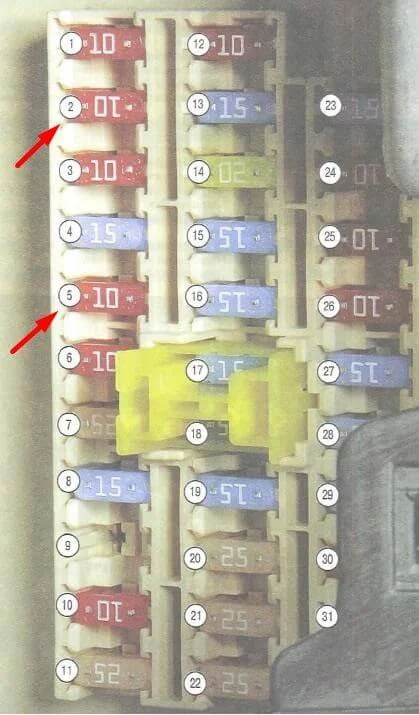 Если вентилятор печки не работает (не дует воздух ни холодный, ни горячий), то проверьте предохранители в салоне №2 и №5, далее проверьте разъем вентилятора печки за бардачком и есть ли на нем напряжение, так же проблема может быть в самом моторе вентилятора печки (щетки, обмотка), в блоке управления климатом, так же стоит проверить разъем резистора печки.