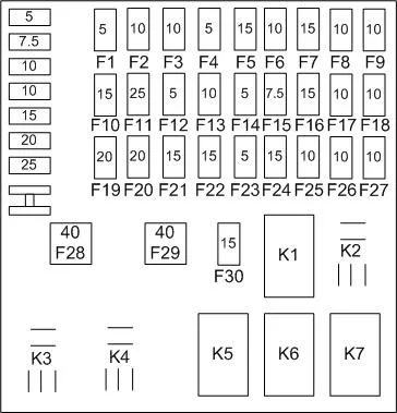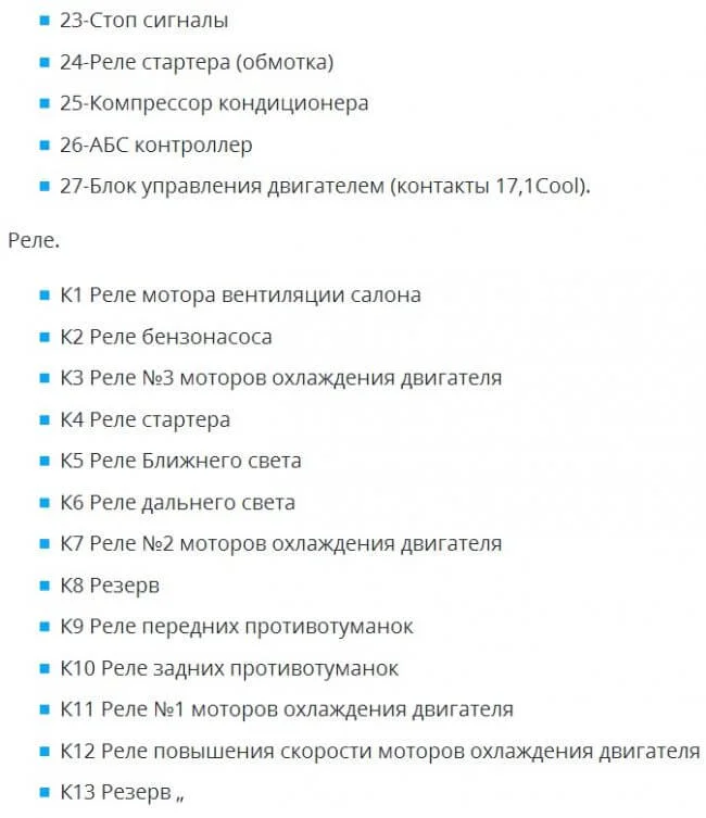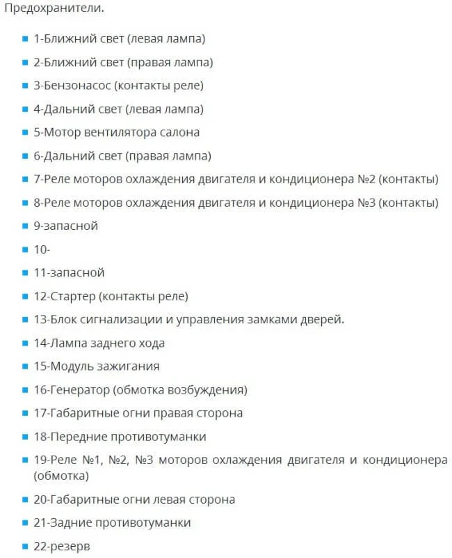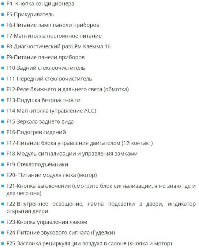 «Предохранители в основном блоке(за маленьким бардачком в районе левого колена водителя).