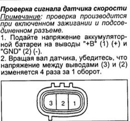 При отсоединённом от датчика скорости на фишке должно быть напряжение на первом 12 вольт, второй провод минусовой, а третий сигнальный. При проверке датчика скорости, проворачивании его шестерёнки, должно будет появляться напряжение. Если вы проверяли не отсоединяя фишку, то вот вы и поймали сигнал от датчика.