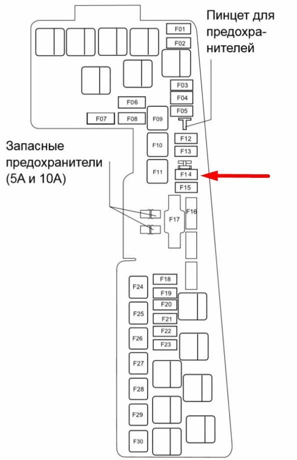 Проверьте напряжение на разъеме топливного насоса, если напряжение есть, то неисправен сам насос или провода в топливном модуле. Если напряжения нет, то проверьте предохранитель №14 под капотом (если такое расположение, как на схеме), так же проблема может быть в электронном блоке управления кузовного оборудования.