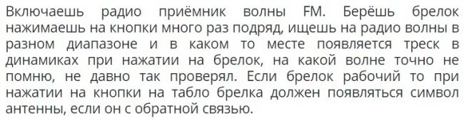 Нужно проверить сам брелок на исправность. Вот как предлагают на одном автофоруме:
