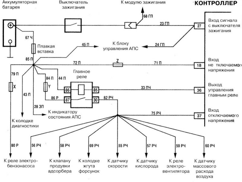 Стоит отметить, что главное реле коммутирует питание не только на форсунки, а и на реле бензонасоса, клапан адсорбера, датчик скорости и кислорода, ДМРВ и реле электровентилятора.