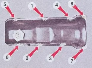 Откручиваете болты крепления картера, их 19 штук. Вытаскивая болты, не растеряйте шайбы.
