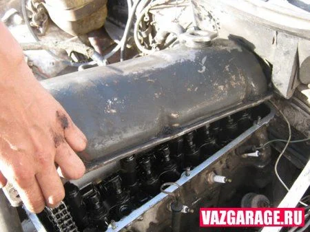 Если карбюраторный, то снимаете крышку воздушного фильтра, убираете сам фильтр, откручиваете 4 гайки крепления корпуса фильтра и убираете этот корпус. При откручивании гаек аккуратнее снимайте их чтобы не упали в карбюратор, а то они могут пролететь насквозь во впускной коллектор и оттуда их засосёт потом в камеру сгорания, что может привести к нехорошим последствиям (как минимум может пробить поршень, как максимум снова заклинит мотор). Можно перед откручиванием гаек сначала закрыть карбюратор чистой ветошью. Там к корпусу фильтра ещё прикреплён шланг сапуна, его тоже отсоедините иначе всё это будет мешать при снятии клапанной крышки. И тросик газа тоже придётся отсоединить от карбюратора и убрать его в сторону. Ещё там остаётся шланг вакуумного усилителя тормозов, тоже проходит над крышкой клапанов, но тут зависит от его длины, может и не помешает при снятии крышки, если коротковат и слишком прижат, тогда придётся и его снять.