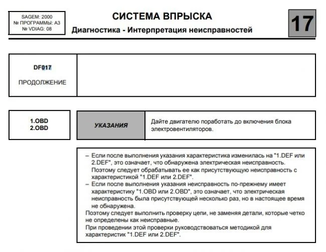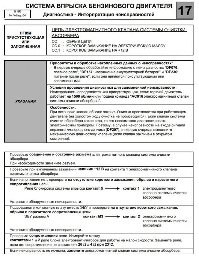 - DF017 Цепь управления главным реле, слишком раннее отключение реле, прерывистый.