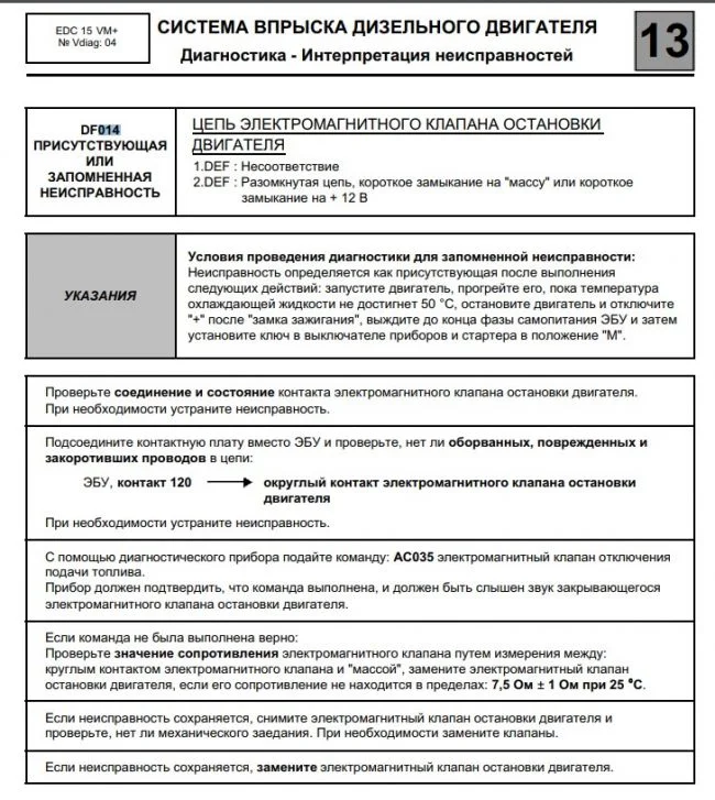 - DF014 Электрический останов, постоянное значение;
