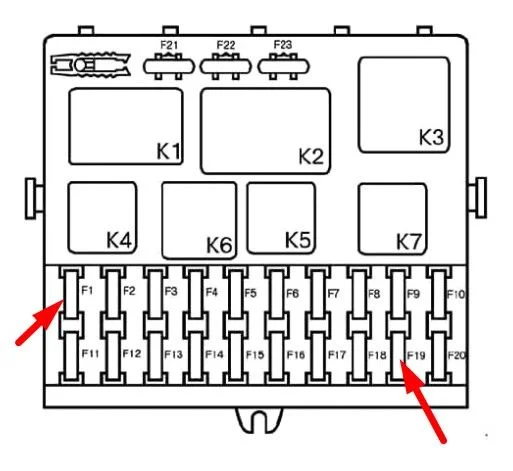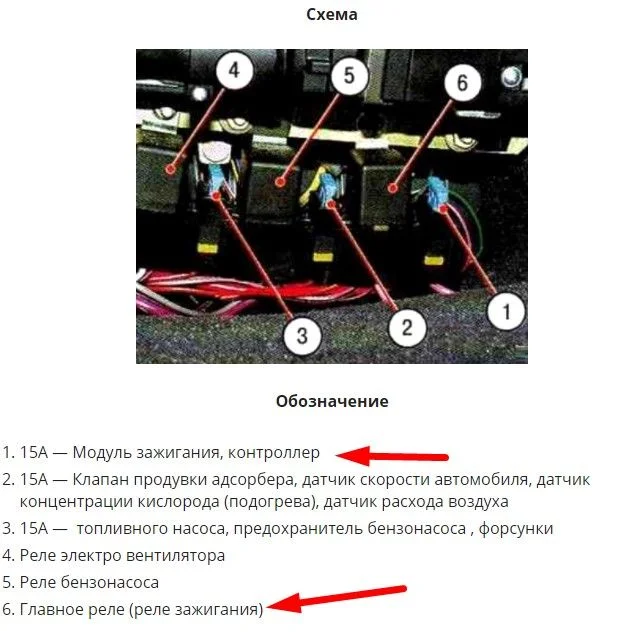 Проверьте предохранители (контролькой) и реле указанные ниже, еще проблема может быть например в замке зажигания (в контактной группе).