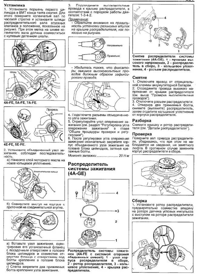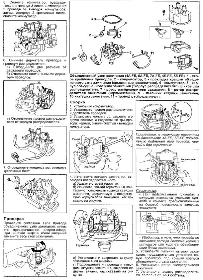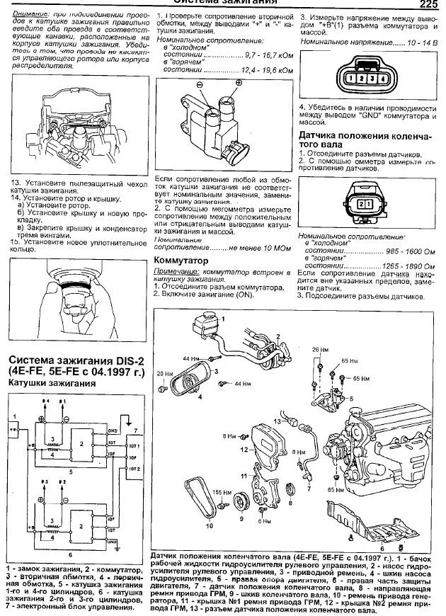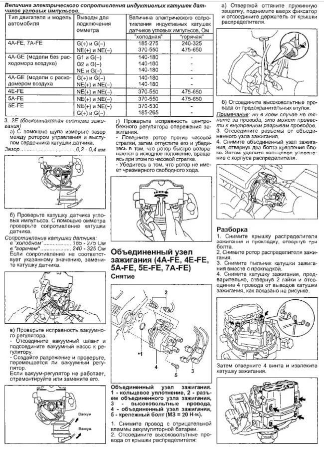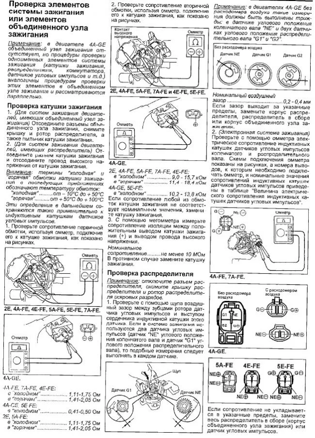 Добрый день ! Проверить катушки которые в трамблере (прерывателе) находятся? У двигателя 4Е-ФЕ есть еще катушки на наконечниках свечей дополнительно? Спасибо ....