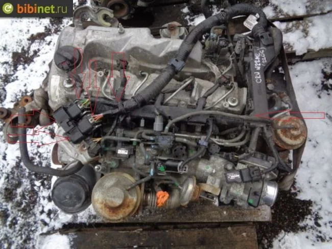 Ниже на фото такого же как у вас мотора, отсоединена от автомобиля «коса» проводки двигателя. Видимо на этом участке от фишек соединения, где-то и не проходит ток к свечам накала. Может на самих соединительных колодках ослален контакт. Может провод какой-то переломился или перетёрся.