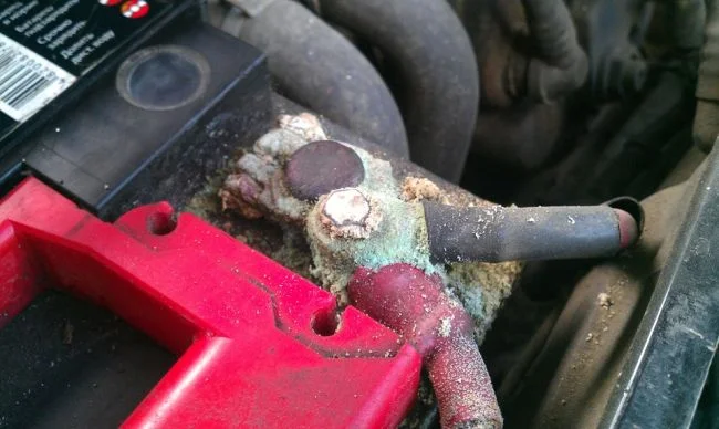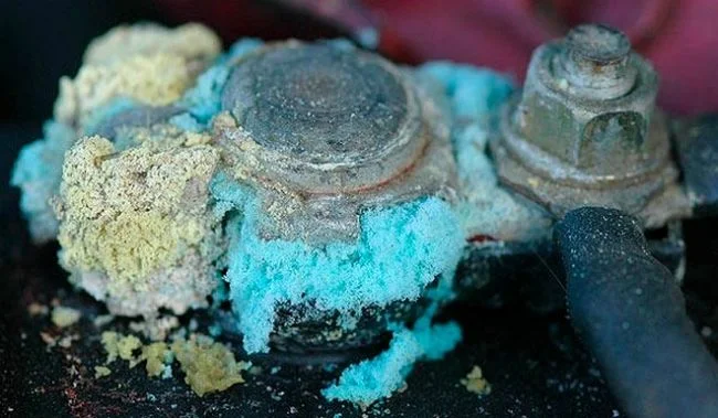 Часто эти окислы образуются из-за того что электролит (или его пары) из аккумулятора попадают на эти самые клеммы, ну и пошёл электролитический процесс, соединение кислоты с металлом и конечно же как результат — это образование окислов.