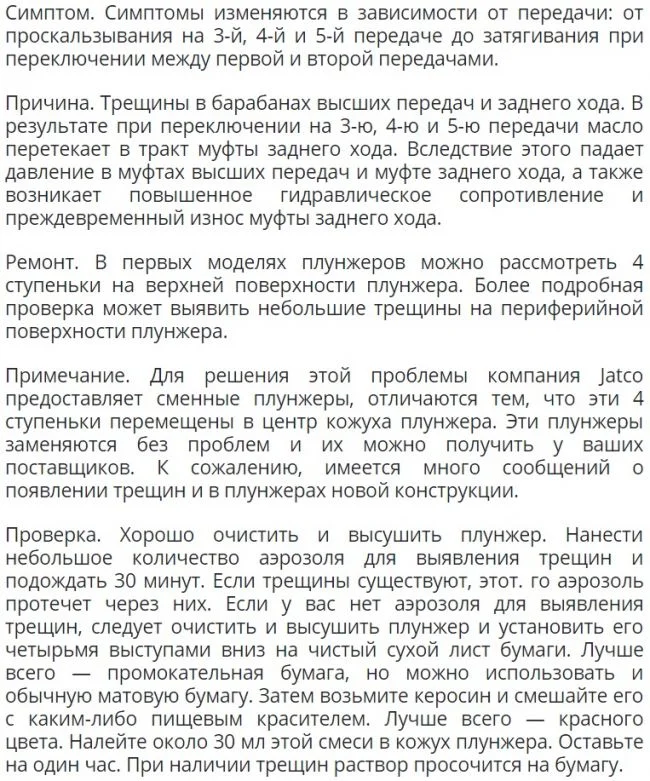 Здравствуйте, у меня проблема с АКПП jf-506e. АКПП включает заднюю передачу, 1-2 передачу, а при переключении со 2й на 3ю уходит в букс. Диагностика выдает ошибку 00652 -контроль включения передачи 27-10- недостоверный сигнал-непостоянно. Помогите советом. Что мне делать?