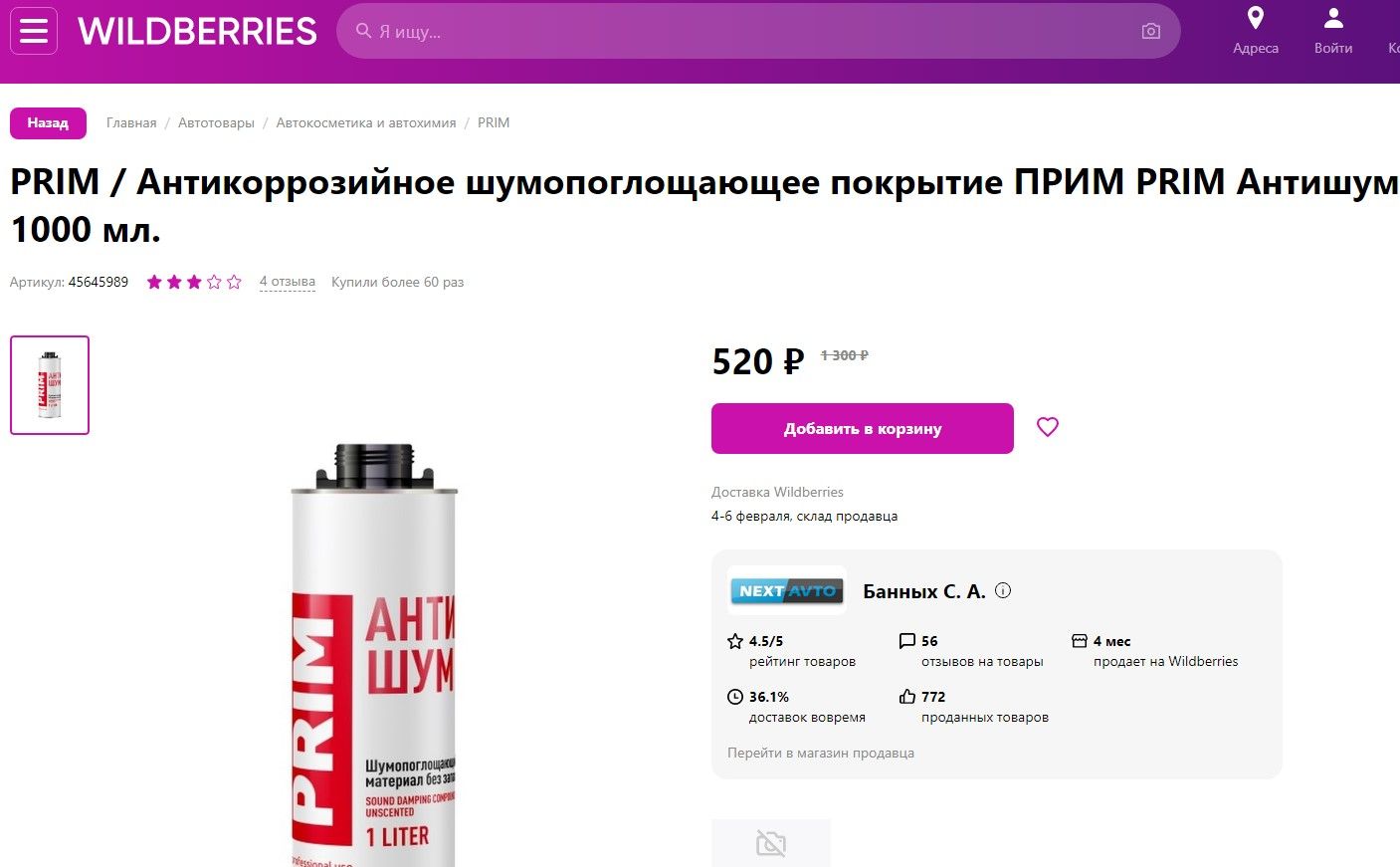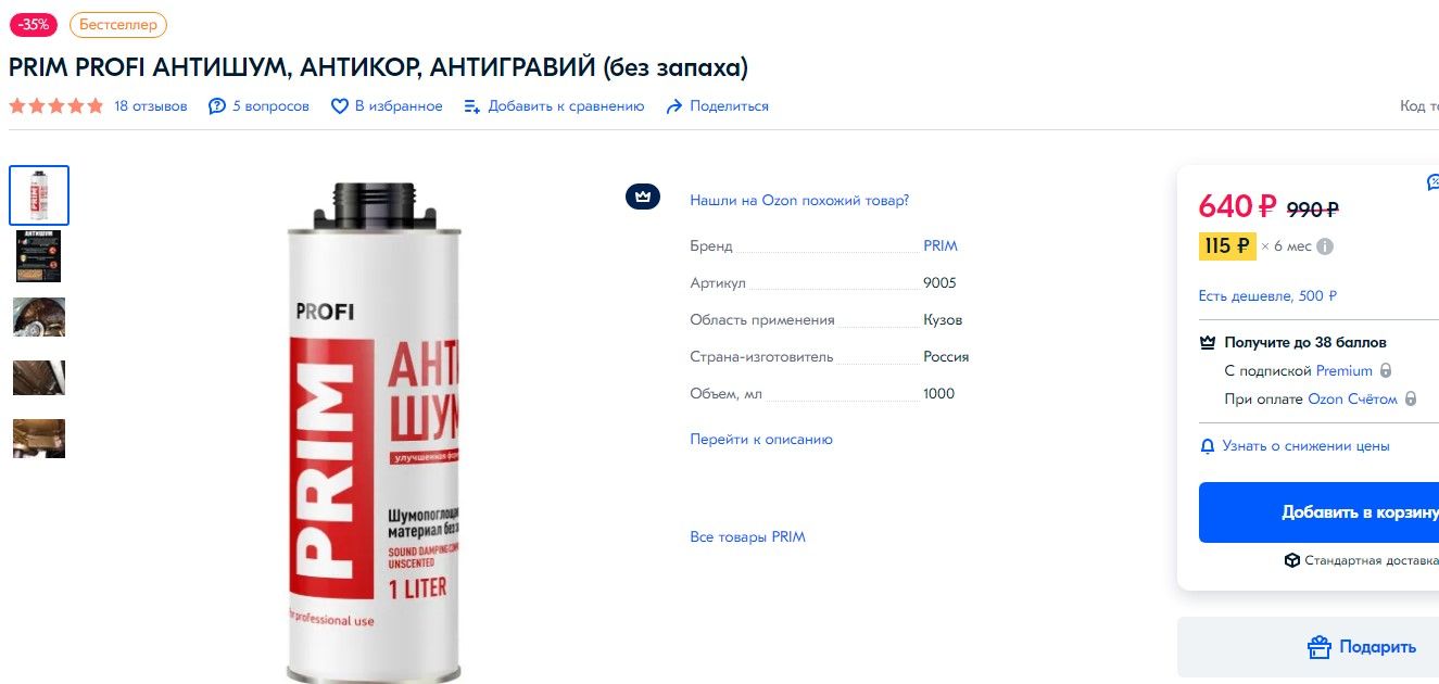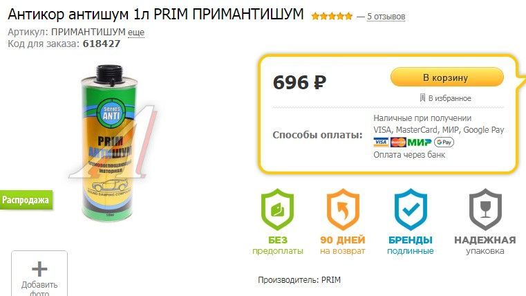 Не могу найти артикул для заказа шумоизоляция напыляемая prim антишум