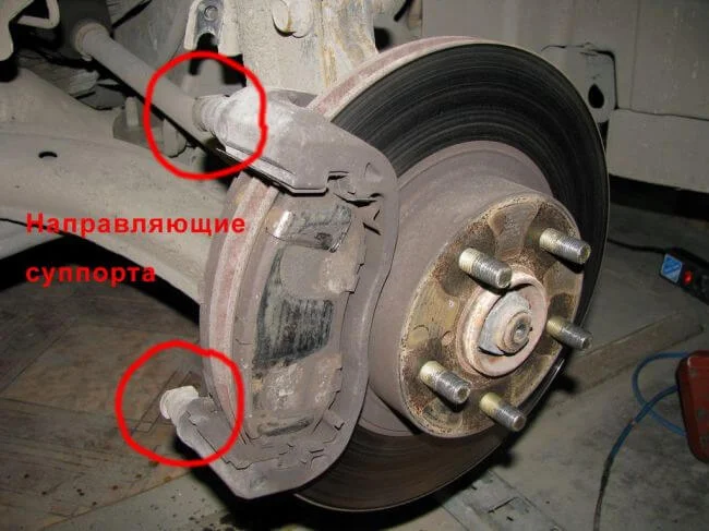 Нужно смазать направляющие суппортов, так же проверить состояние тормозного диска, если диски сильно изношены, то лучше их заменить и установить новые колодки. А тормозные диски лучше не точить на станке, а менять.