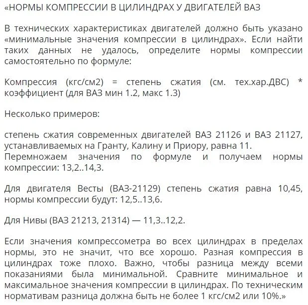 Для вазовского мотора компрессия 15,5 атмосфер это несколько высоковата цифра. 14 атмосфер ещё может быть, но больше у нового мотора, а у поношенного компрессия ниже будет.
