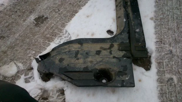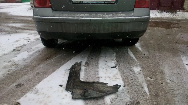 Проехал по луже и сзади появился скрежет, я посмотрел по колесным аркам, там всё в порядке, заглянул под машину и увидел что оторвался кожух в районе топливного бака. Пока доехал до гаража, по дороге он отвалился, залез в яму но не чего не увидел, что где-то, что-то отломано.