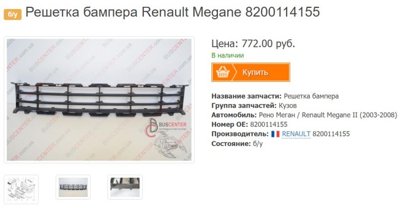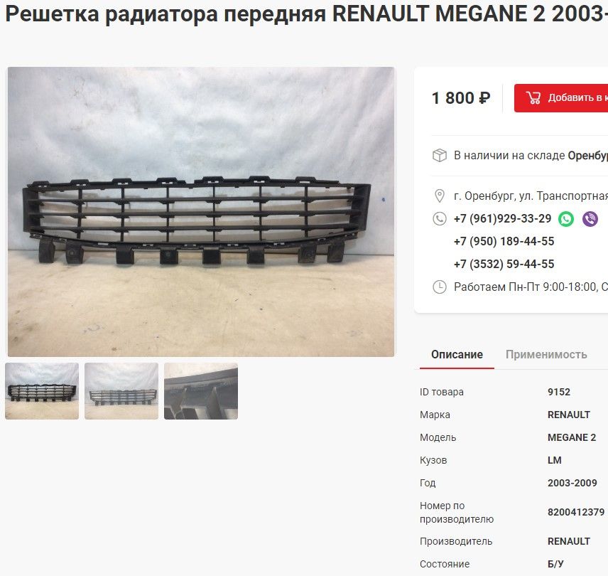 Подбираю нижнюю решетку радиатора(бампера). Не могу понять подходит ли запчасть с артикулом EUROBUMP REN07ME053 (оригинал Renault 8200114155) или нужна запчасть с артикулом Renault 8200412379 (или аналоги) по фотографиям детали похожи. Авто — Renault Megane 2, 2007г.