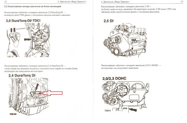 Где номер двигателя на Форд Транзит 7 2.2?