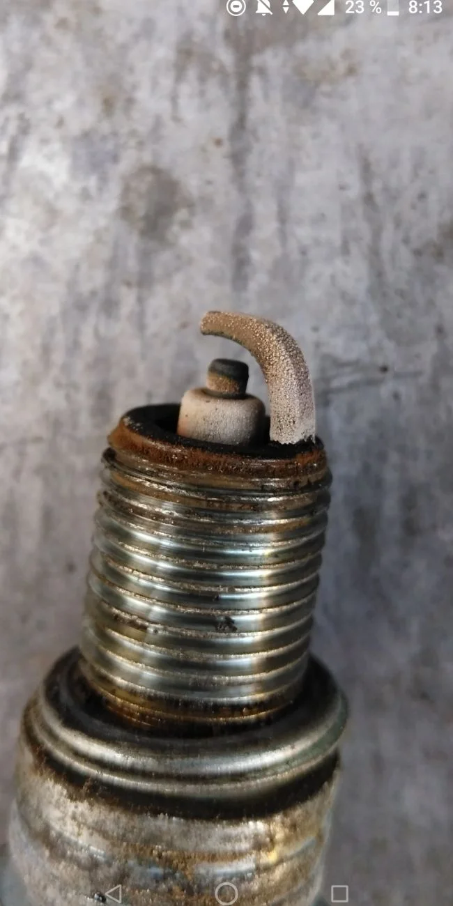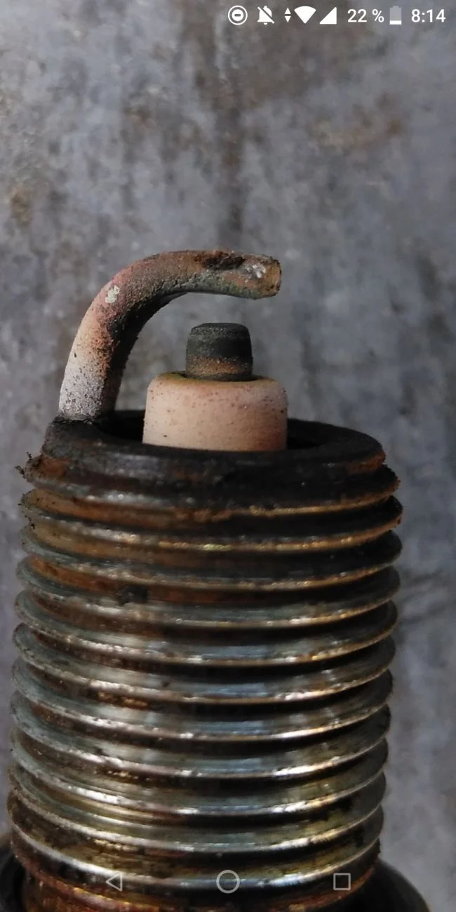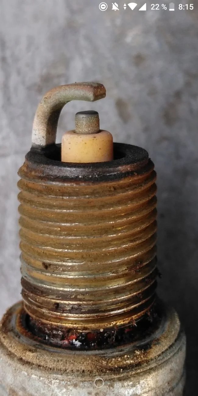 Нагар нормальный рабочий. Есть жёлтый налёт от присадки в бензин. Зазор кажется великоватым, может проверить? По износу центрального электрода, свечи отработали свой ресурс, пора менять.