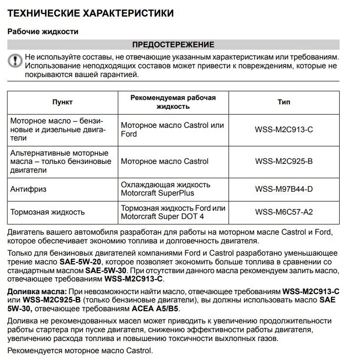 Моторное масло — допуски указанны ниже, в выдержке из руководства.