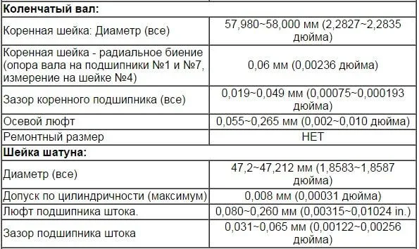Размеры коленвала 6-ти цилиндрового движка. Ремонтные размеры не предусмотрены.