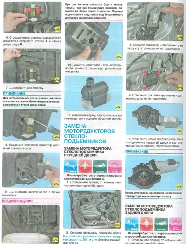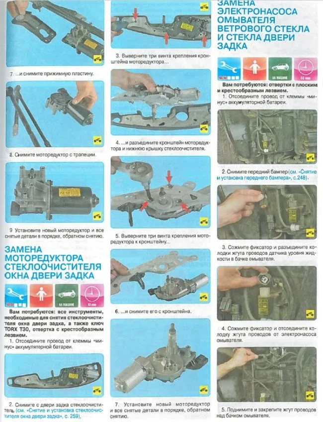 Здравствуйте! Моторчик омывателя стёкол жужжит, но вода не подаётся. Как добраться до бачка омывателя для замены моторчика и если можно, то последовательно? Спасибо!