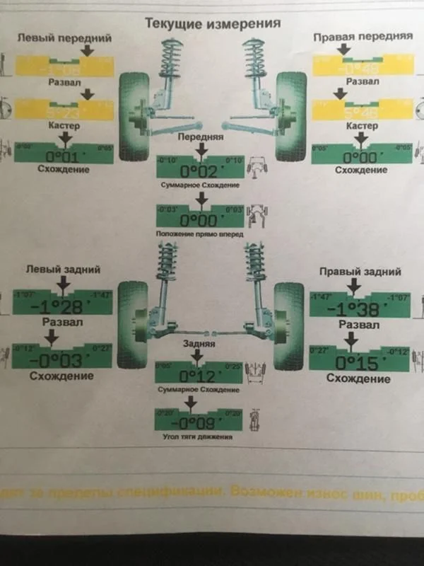 Схождение в порядке, но его ещё надо будет проверять после выставления развала и кастера.