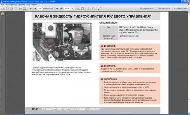 Здравствуйте. Автомобиль 2013 г, пробег 32000 км. Жидкость в бачке ГУР красного цвета(залита на заводе — марку не знаю) на нижнем уровне, менять ещё рано, утечки нет. Какую купить жидкость для доливки?