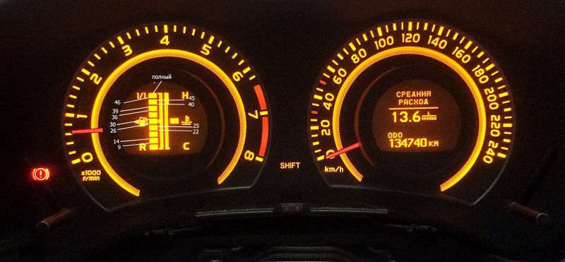 Номинальный объем топливного бака на Тойота Королла 150 всех модификаций — 55 литров, включая резерв 5-7 литров. То есть когда загорелась лампочка, что пора заправляться, то в бак получится залить около 48 литров, а значит оставшегося резерва на 100 км хватает.