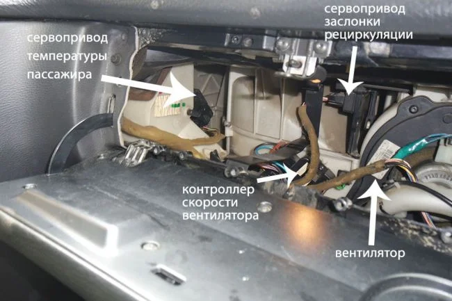 Проблема может быть в самом блоке управления климатом (если не загорается кнопка), в приводе заслонки рециркуляции или же есть механическое заедание заслонки.