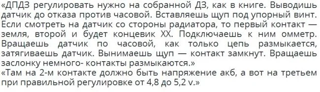 «Разобрался с этой проблемой. Сервопривод просто тупо клинил. Снял клемму, пошел включил зажигание, потом подошел к мотору ухо ближе к дросселю и клемму на батарею сажу, слышу попытки провернуться механизма но не слышу реального поворота шестерен. Разобрал в очередной раз все, вытащил все шестерни чтоб моторчик был без нагрузки, опять ткнул клемму вижу вращается. Поставил шестерни, клинит. Вымыл всю смазку, которая там была, керосином, собрал, опять накинул клемму слышу все крутится там и шуршит. Собрал все до кучи, завел,… Шепчет.»