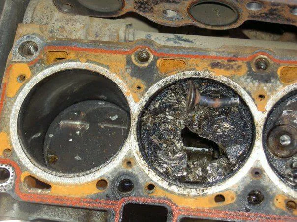 Но если поршни не пробиты, то можно будет их и не трогать при ремонте. А вот головка блока цилиндров начиная от клапанов, их направляющих, целостности самого литья корпуса головки блока цилиндров — особенно куда впрессовывается направляющая, могут быть повреждены. И в случае «последнего» ремонт не целесообразен. Лучше найти на разборке головку блока или контрактную головку блока цилиндров, так как ремонт литья головки(сварка аргоном) не в состоянии выдерживать такие перепады температур. И в результате вы получаете то, что имели в начале появления проблемы. При обрыве ремня грм бывает и лопается распределительный вал, обрывает шпонку на приводном шкиве распределительного вала и даже загибает шатуны.