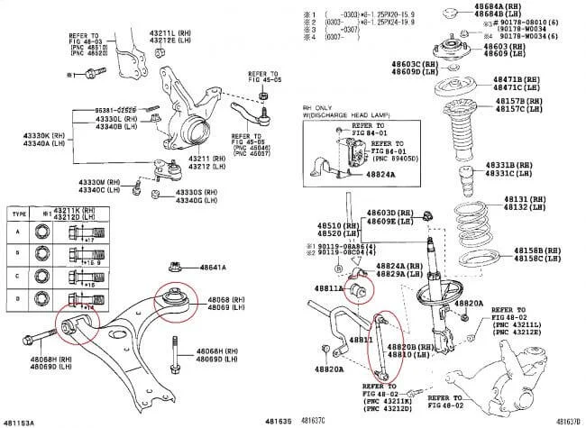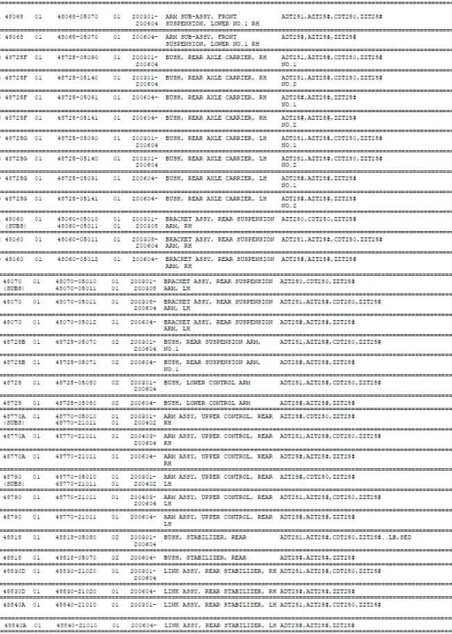Какие коды сайлентблоков передней и задней подвески Тойота Авенсис?