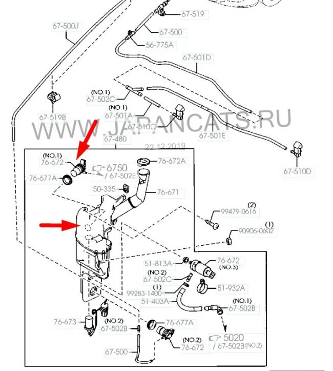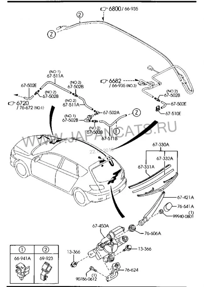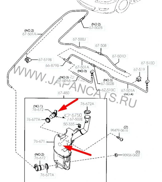 Где находится бачок омывателя заднего стекла Мазда 3?