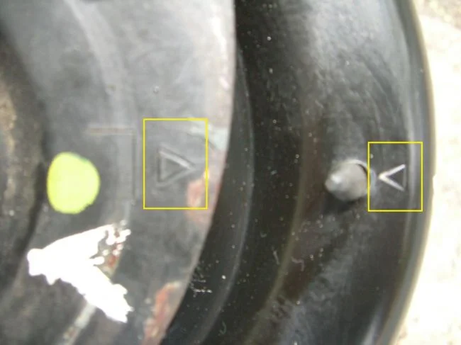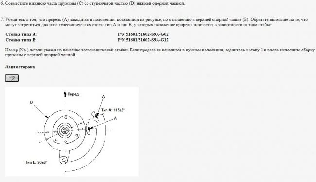 Здравствуйте. Подскажите пожалуйста, как должны быть выставлены метки на опоре при замене опорного подшипника и опоры передней стойки?