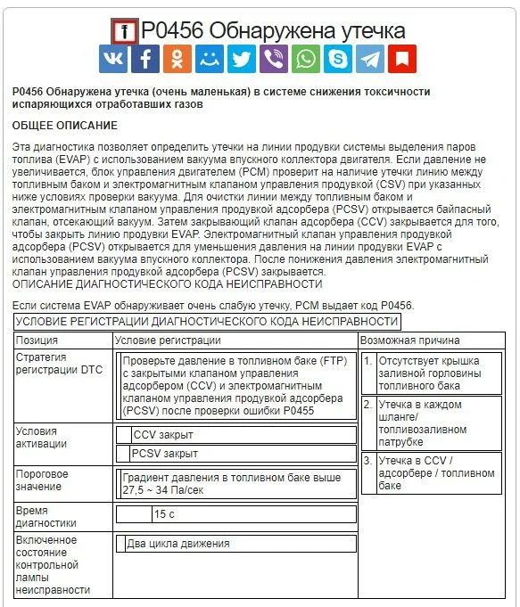 Здравствуйте. После сброса ошибки (ошибка P0456 — EVAP Emission System Leak Detected Very Small Leak) через 200 миль загорается chek. Менял крышку бака, не помогло. Что сделать? Спасибо