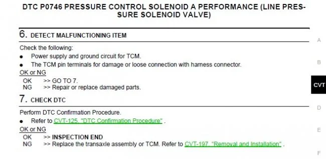 P0746 Электромагнитный клапан управления давлением рабочей жидкости КПП — функционирование или «залипание» в закрытом состоянии.