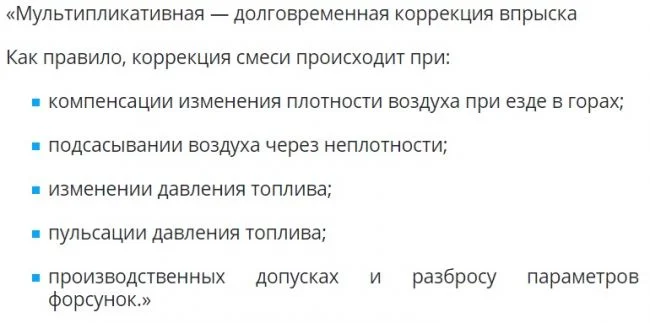 Эта коррекция (мультипликативная) как правило, происходит на всех других режимах кроме холостого хода.