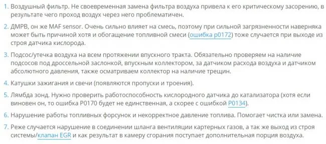 P0170 — нарушение соотношения смеси, более подробно, так же возможные причины описаны тут.