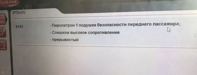 Здравствуйте. На фото видно ошибки, только понять не могу, то ли модуль, то ли шлейф. Вместе с этими загорается и SRS пиропатрон переднего пассажира, слишком высокое сопротивление, прерывисто. Хотя в этом аэрбаге стоят обманки, сопротивления. Могут ли быть все эти ошибки в связи друг с другом?