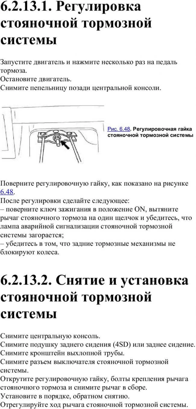 Про эту гайку я знаю. Я ее уже выкрутил до упора. Вот полностью про монтаж-демонтаж всей стояночной системы полезно было найти. Спасибо! Теперь трос подгоню нормально. Где-то он вышел из пазов, похоже.