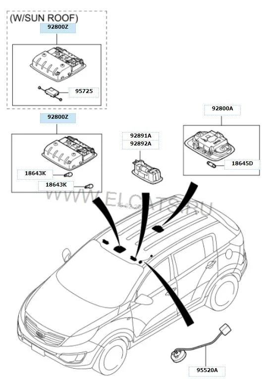 Нужно прозвонить саму лампу (если у нее две нити), сам плафон, проверить его плату и пайку. Артикул плафона Hyundai/Kia 928003U000ED. Вряд ли нужно будет приобретать новый, отдайте электрику, он починит.