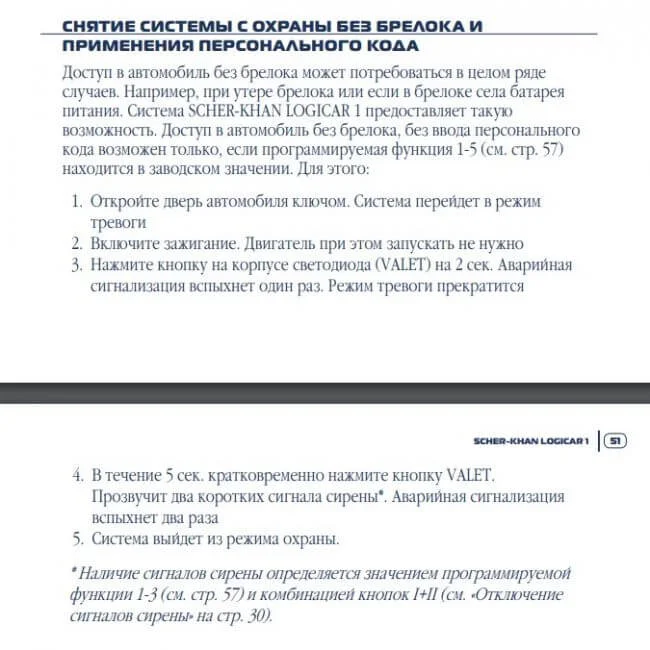 Срабатывает самопроизвольно сигнализация Scher-Khan Logicar 1.Каким образом отключить сирену и запустить двигатель.Какие действия нужно произвести. На брелок не реагирует.