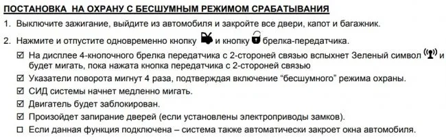 Попробуйте поставить на охрану с бесшумным срабатыванием, как описано ниже. Есть еще функция — долговременное отключение сигналов сирены, но не описано, как включается.