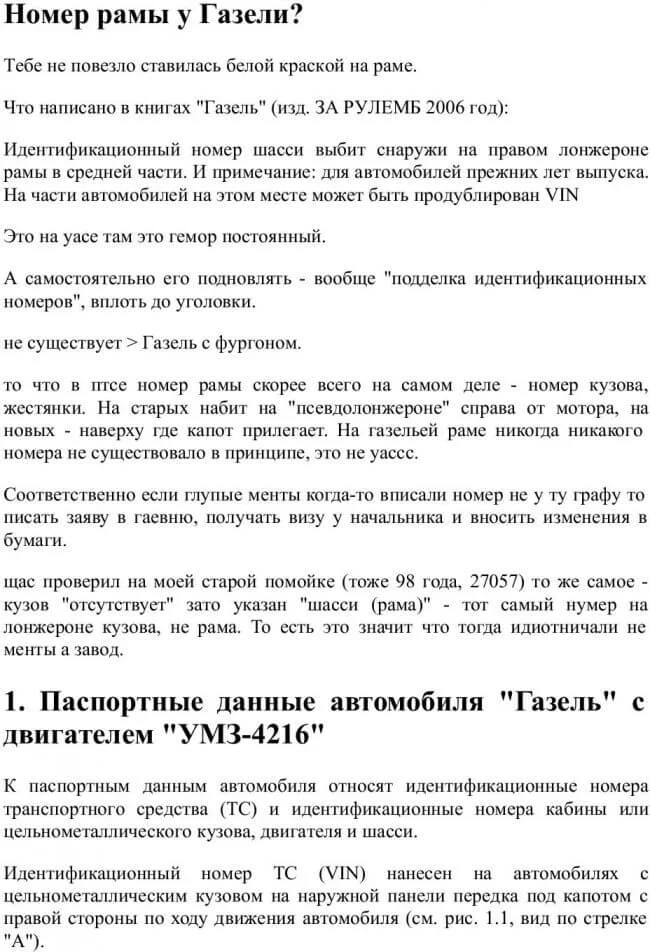 Номер на раме «газель» может быть в двух местах, вот почитайте информацию.