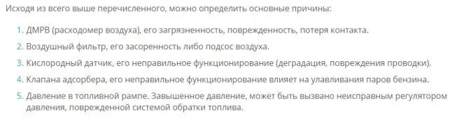 P0172 — слишком богатая смесь, возможные причины описаны тут.