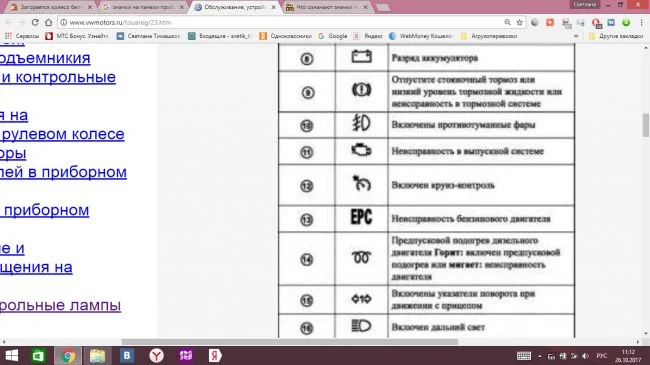 Загорается колесо белого цвета после 100 км/ч в Фольксваген Тигуан