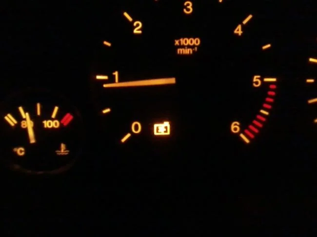 Здравствуйте. Не могу найти где стоит лампочка температуры. Когда перегревается двигатель. При какой температуре она загорается?