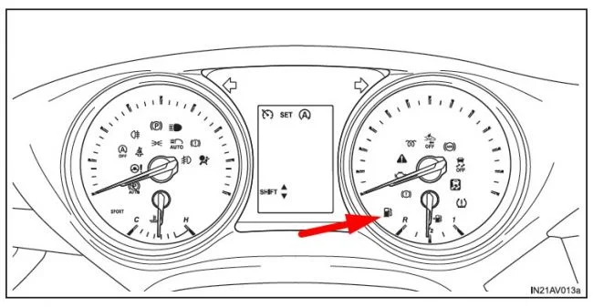 Если заканчивается топливо в бензобаке, какая на приборной доске должна загореться лампочка?