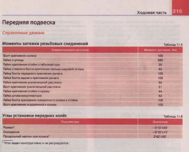 Здравствуйте. Прикладываю данные из руководства по ремонту. Более точные данные можно узнать у ОД, так же в сервисе по развал-схождению должна быть база автомобилей с данными установки колес.