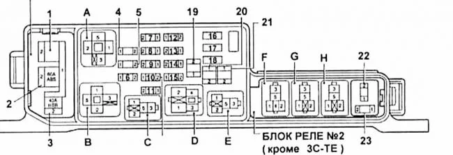 Блок реле и блок плавких вставок в моторном отсеке toyota caldina